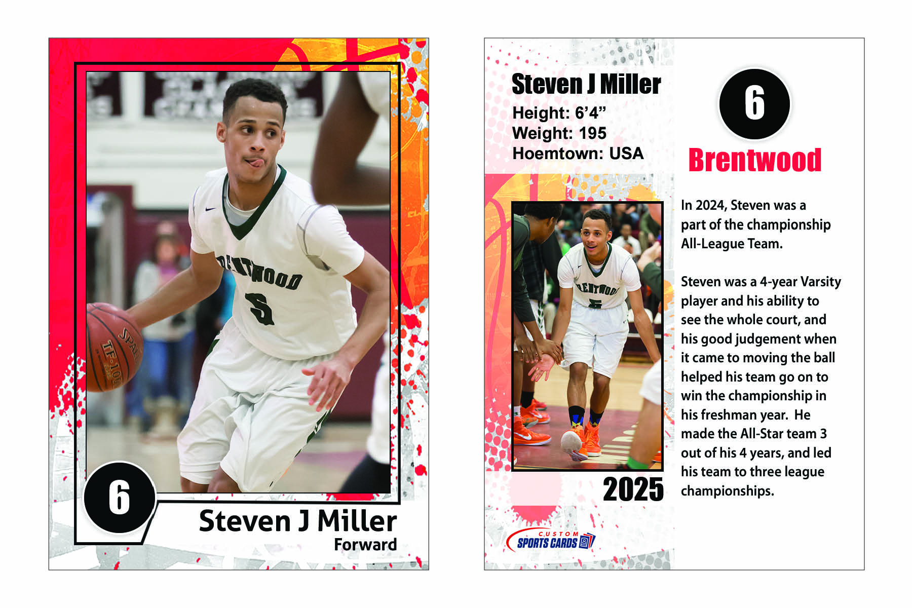 Celebrate your MVP with personalized basketball trading cards that showcase their stats, highlights, and unforgettable moments. At Custom Sports Cards, you can design custom basketball cards using real photos, team logos, player positions, and game-day achievements—perfect for youth leagues, high school teams, and basketball fans of all ages.