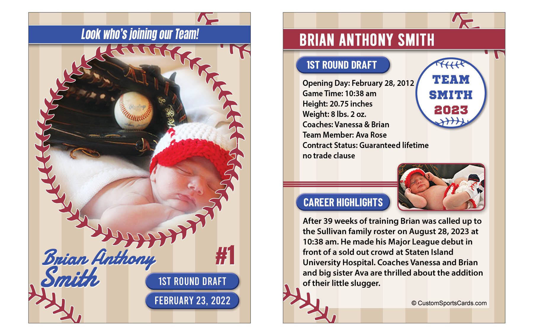 Personalized Baseball Trading Card Baby Birth Announcement