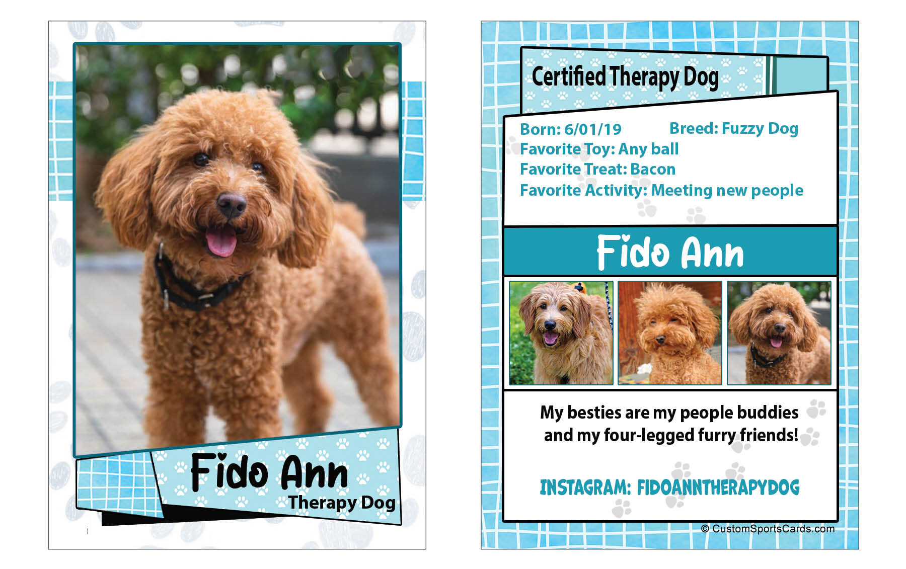 Start designing your custom pet trading cards today and turn your dog into a star—because every dog has a story worth sharing.