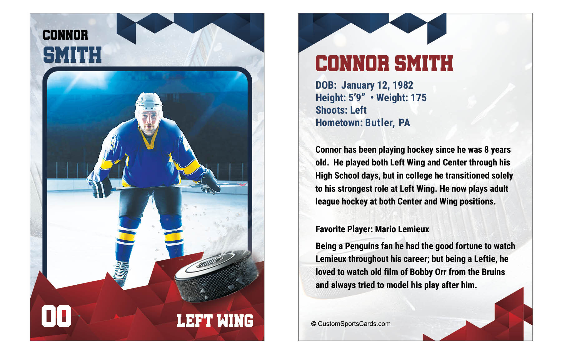 Celebrate your hockey star with personalized ice hockey trading cards! Whether it’s for a youth league, school team, or travel club, our custom hockey cards feature player photos, stats, team names, and more. Perfect for gifts, team banquets, or collectors, these cards highlight both individual achievements and team pride.